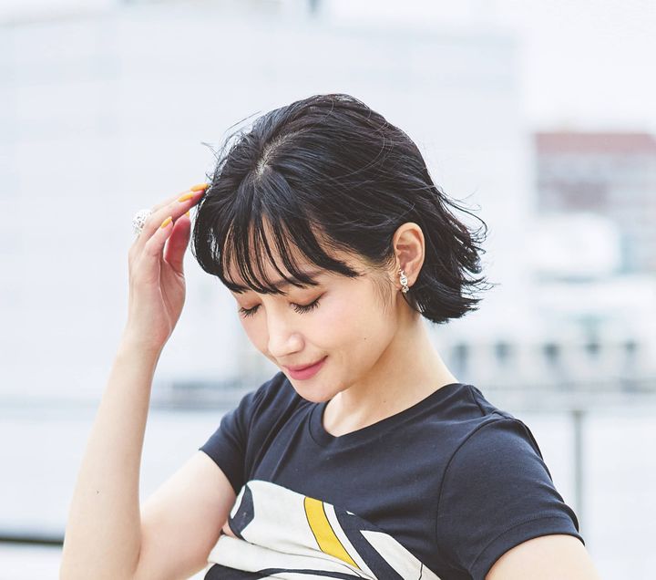 重めシルエットの黒髪ボブにラフなパーマを加えた、こなれ感のあるスタイル。オイルで束感を出すと、モードな雰囲気がぐっと引き立ちます。耳かけアレンジや大ぶりアクセも映える洒落見えボブです。