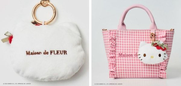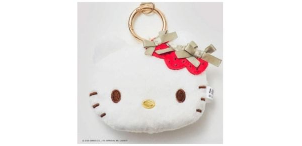 ハローキティのチャームポイントのリボンにいちごをあしらい、さらにいちごのヘタが「メゾン ド フルール」アイコンのリボンになった大人可愛い贅沢なアイテムです。