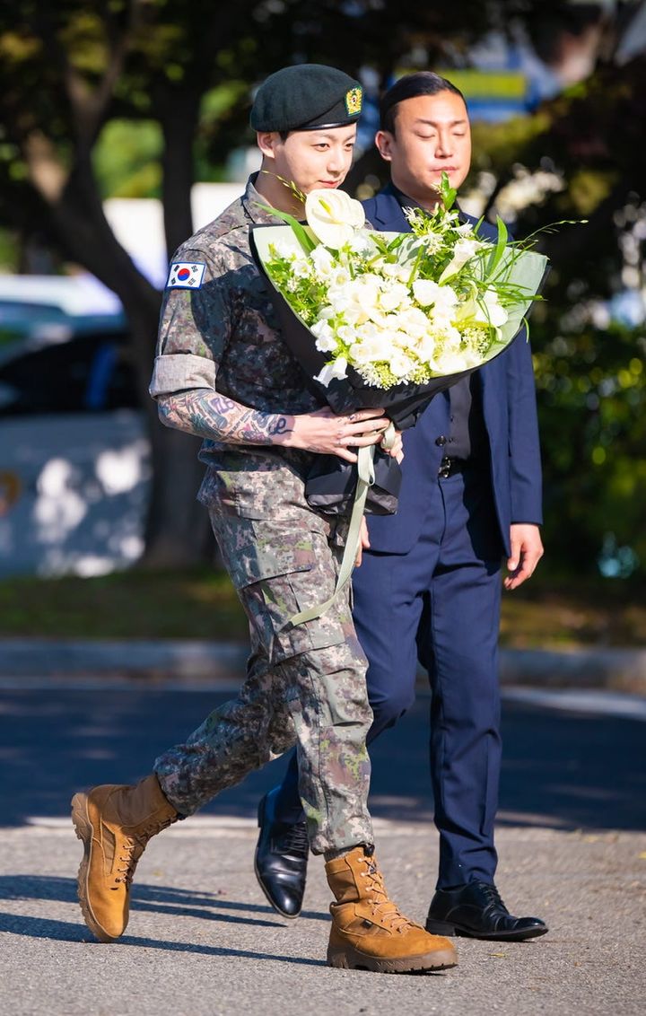 6月10日に一足早く除隊した RMとVに続いて、ジョングクとジミンもついに兵役を終えて部隊を後に。