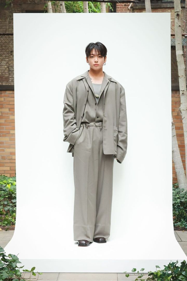 ニューヨークで開催された「カルバン クライン」 のショーに出席。明るいカーキグレーをレイヤードしたこなれ感のあるワントーンスタイルで、ジョングクの持つワイルドなムードをほどよく中和。