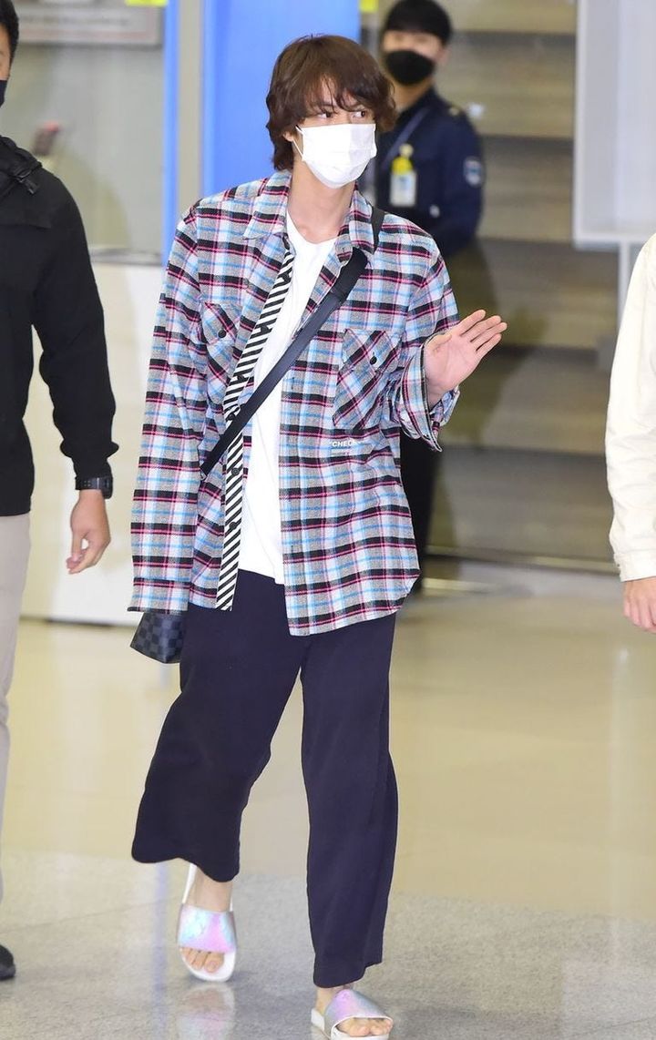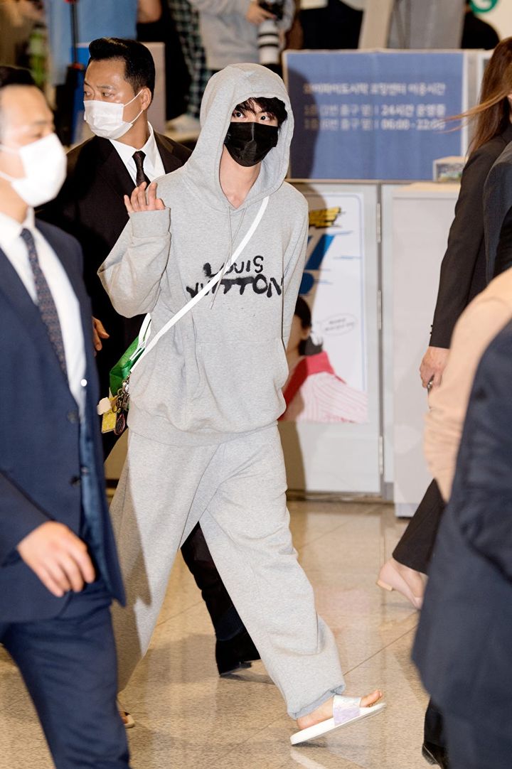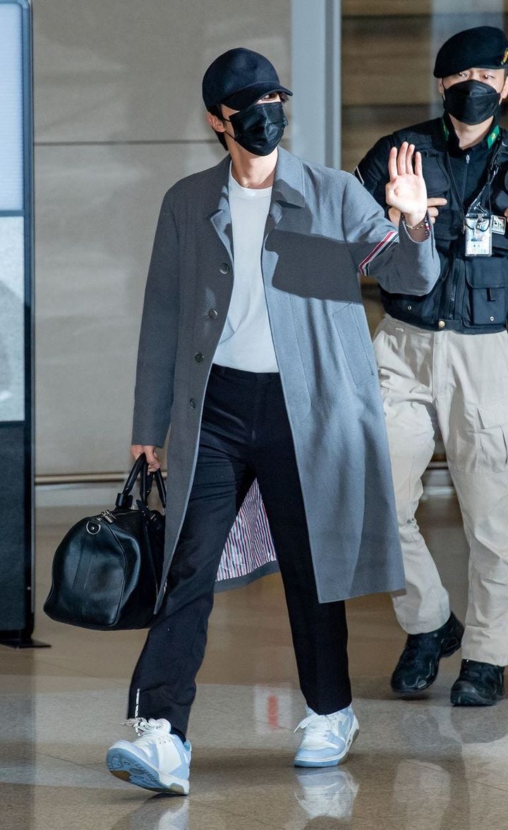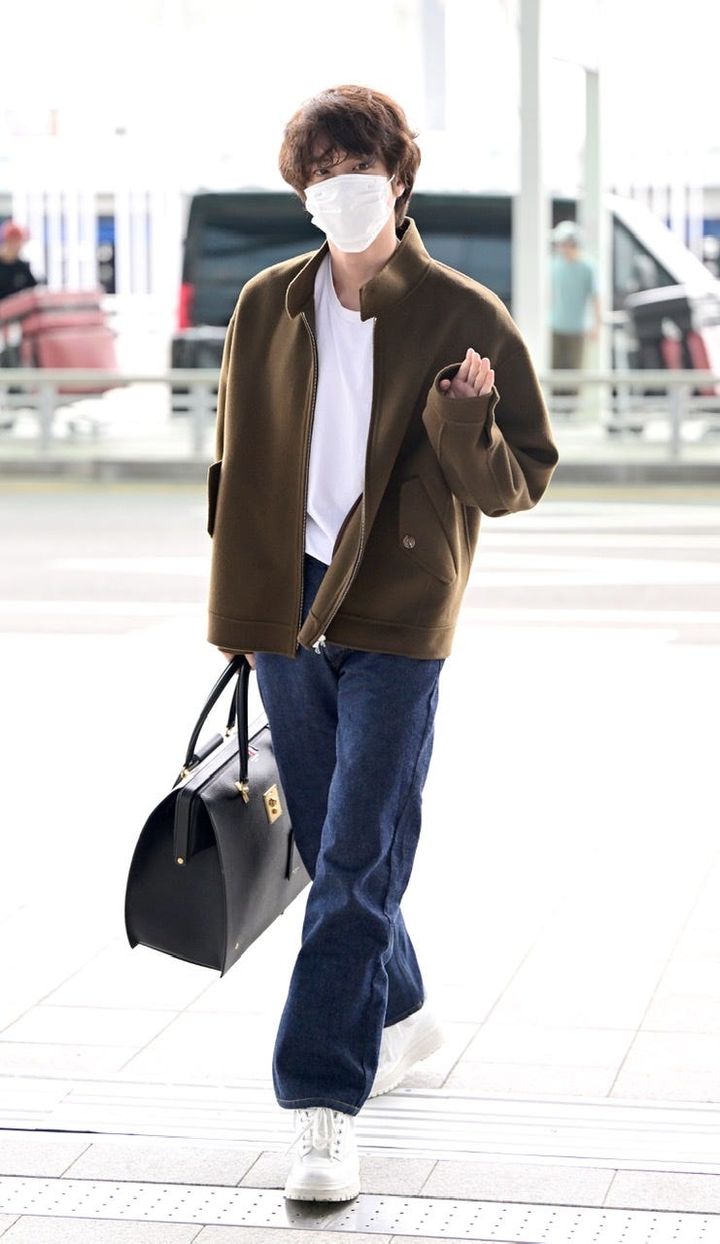 休暇中には、入隊前に仕込んだ伝統酒の様子を見に行った様子。白のTシャツに、「メゾン マルジェラ」のカーディガンを羽織ったシンプルなスタイリングでも溢れるスターオーラ!