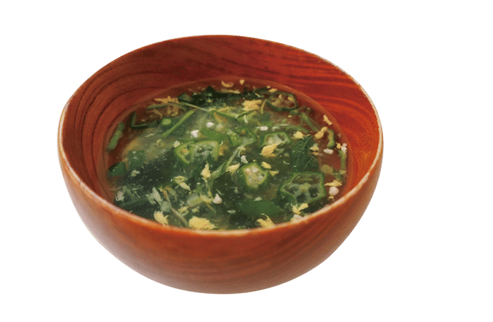 しょうがやゆずを加えて風味よく仕上げた、オクラやモロヘイヤがたっぷり入った具だくさんのフリーズドライスープ。4食入り。