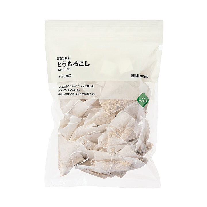 北海道産のとうもろこしを使用したノンカフェインのお茶。やさしい甘さと香ばしい風味が特徴。84g (2.8g× 30袋)。