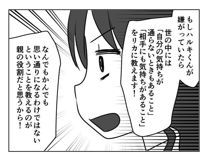ナツキさん、ビシッと伝えましたね。そうなのです。子どもの気持ちはコロコロ変わりやすいし、物事を大げさに言ったり、オーバーに捉えたり、いろいろ気持ちの変動が忙しいですよね。そんなとき、親自身が一緒になってその気持ちの変動に乗っかってはいけないのです。相手にも気持ちはあるし、自分の気持ちだけが世の中のすべてではないということをしっかりと伝えていく。そして常に冷静に子どもを見守ることが、親ができることなのかもしれません。