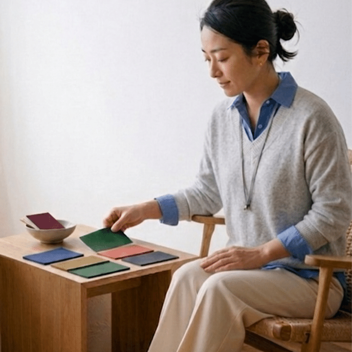 その答えを、心の隅に置いておくと自分を守る小さなコンパスになることがあります。私が行っているワークでは色を選ぶことをきっかけに、自分の心の声にそっと耳を傾ける時間を作っています。言葉にするのが難しい時も色は気持ちに気づかせてくれることがあります。