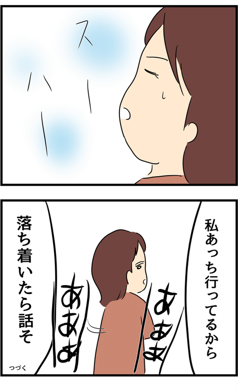 夫の行動に怒りを感じるサレ妻。深呼吸をして気持ちを落ち着かせます。