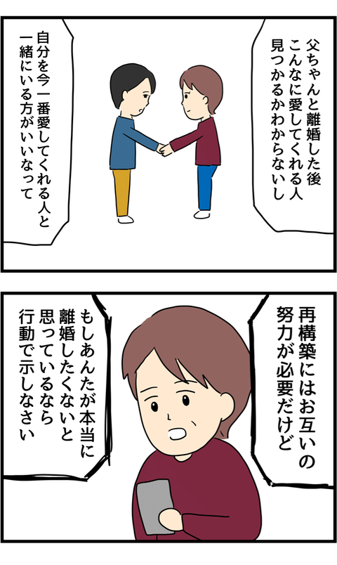 2. 母からのアドバイスで再構築を誓う夫 一方サレ妻は…【旦那の浮気を暴いた話 Vol.38】