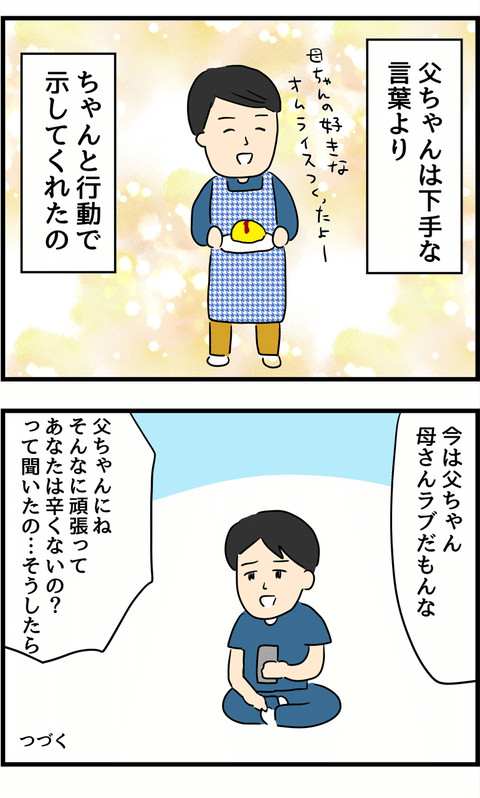 母の我慢だけでなく、父の絶え間ない努力を知ったのでした。