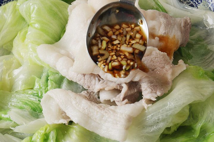 ワシワシ食べる温サラダ“豚バラ肉とレタスの油ゆで”