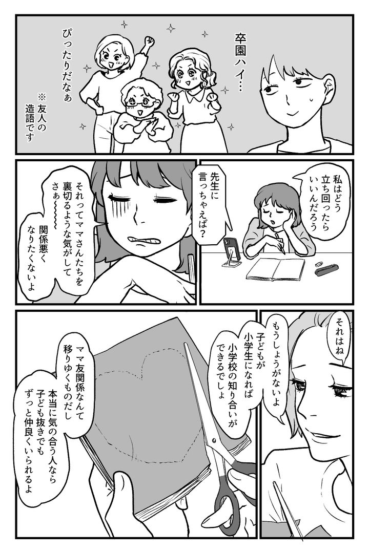 また、ママ友関係が移りゆくものであることも実感をもって理解できました。