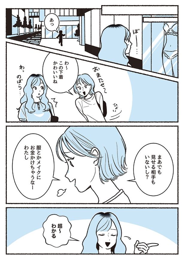 「せっかく買った服なのに、着てみるとシルエットがいまいち」「肩がこる・疲れる」「姿勢が悪い」そんな悩みは下着で解決できる! 下着よりおしゃれやメイクにお金をかけるアパレル店員・のばらと大きい胸が悩みの事務職・ゆり。下着選び初心者ふたりのお悩みを、元下着販売員で下着オタクな著者のちーちょろすさんが解決する『悪いのはスタイルじゃなくて下着でした 一生モノの下着の教科書』。