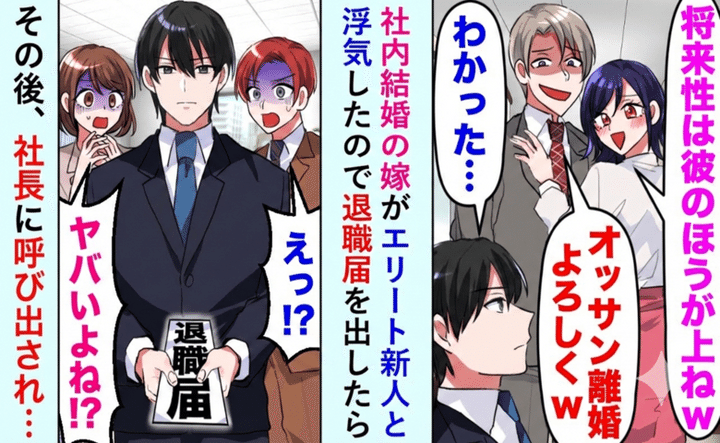 すると社長から呼び出しが。疑問に思いながら社長室を訪れるとその場には、妻と新人の姿がありました。その時、社長の口から出たのは予想外の言葉だったのです。