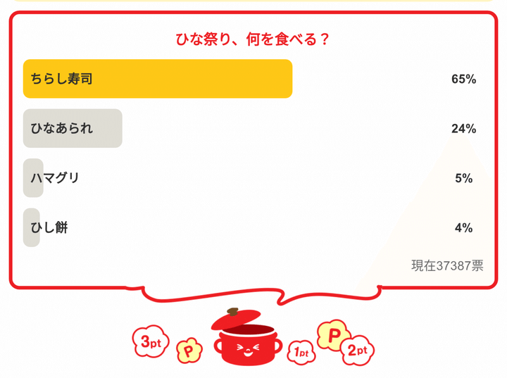 3. 「ひな祭り、何を食べる?」<回答数37,387票>【教えて! みんなの衣食住「みんなの暮らし調査隊」結果発表 第473回】