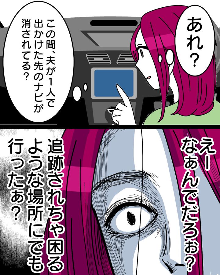 記録が残っているはずの直近の行き先履歴が消されている。湧き上がる違和感。そういえば、最後に車が使われたのは夫が1人で出かけたときだったような……。お見送りのときにナビ、使ってましたよね……?