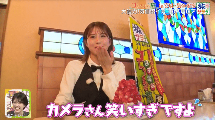そんな大仁田アナは、絶品グルメを求めて、まだ雪が残る宮城県気仙沼市へ! 地元民に聞き込み調査し、ボリューム満点のマグロ丼や、気仙沼イチゴをふんだんに使った巨大イチゴババロアを味わった。