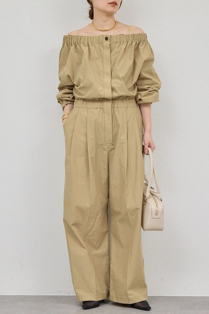 肩パッド入りできちんと感を演出。大人のリラクシースタイルを支えるオールインワン。