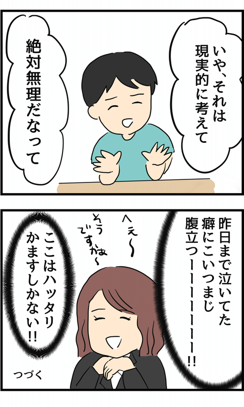 義両親の説得もあり、夫は離婚を了承。ようやく離婚届にサインをもらい、いよいよ慰謝料の話し合いが始まります。