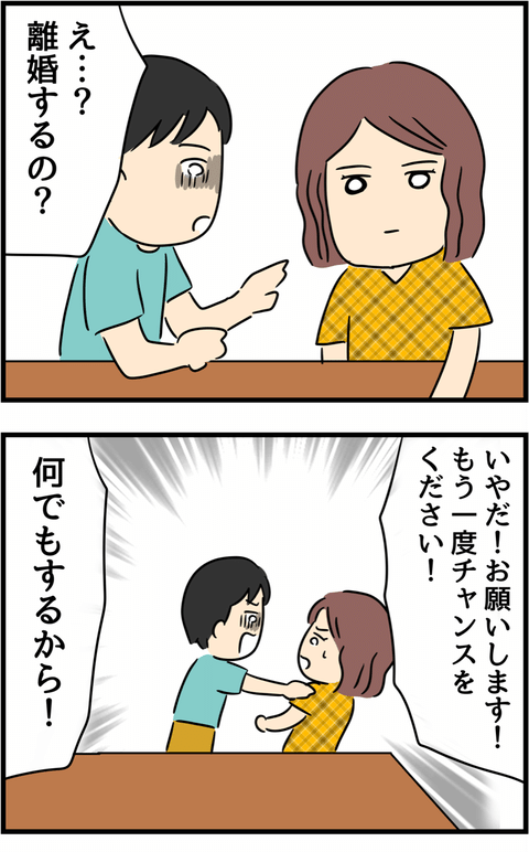 2. やり直したいと懇願する夫! 押し問答を始める2人に夫の父親は…【不倫され慰謝料◯◯◯万円ゲットした妻の話 Vol.15】