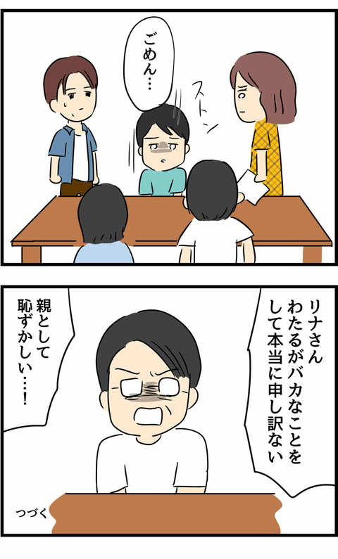 夫の両親に不倫の事実を告げる夫。動揺する両親を前に妻リナが突きつけたのは…。