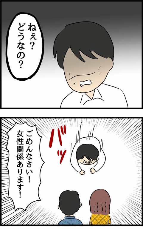 不倫の事実を暴かれ、真っ青な夫。