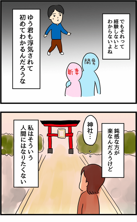 夫の浮気を通して、心の痛みと向き合い続けた元妻。