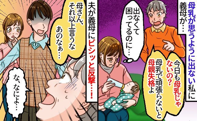 「あなた…母乳で頑張らないと」悩んでいる私を責める義母。ある日、見かねた夫が義母にピシャリと言ってくれた話