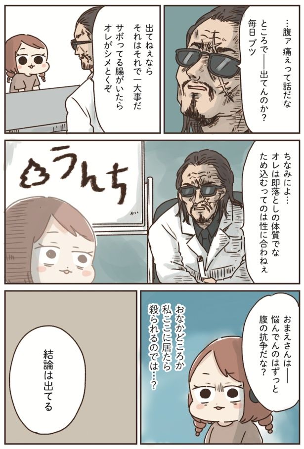 おなかの不調の原因を探るため心療内科を受診。強面の医師から下された診断は?/おなかよわい子ちゃん⑧