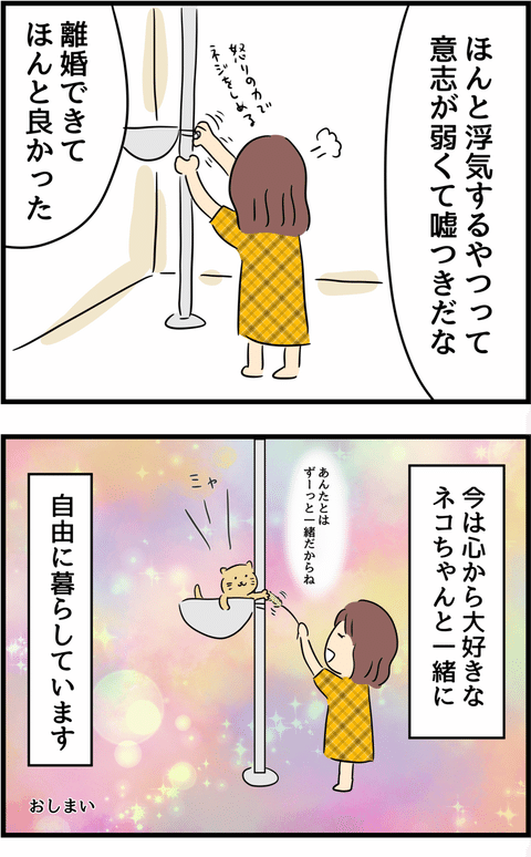 2. 猫との穏やかな新生活! 友人からのメッセージで確信した今の幸せ【不倫され慰謝料◯◯◯万円ゲットした妻の話 Vol.33】