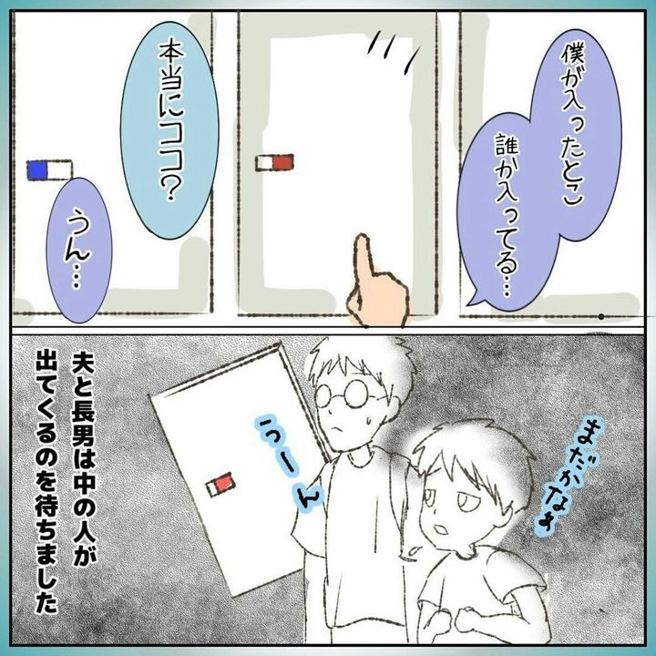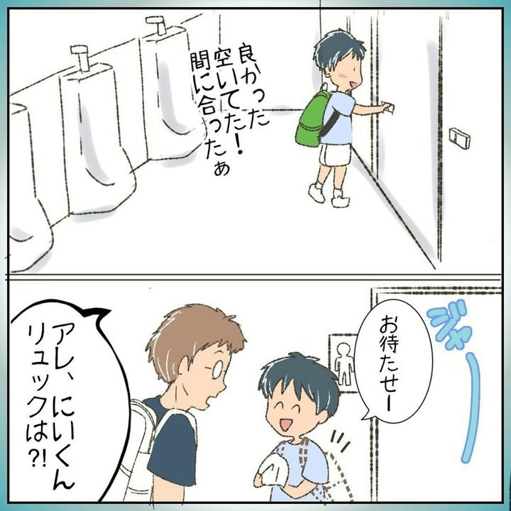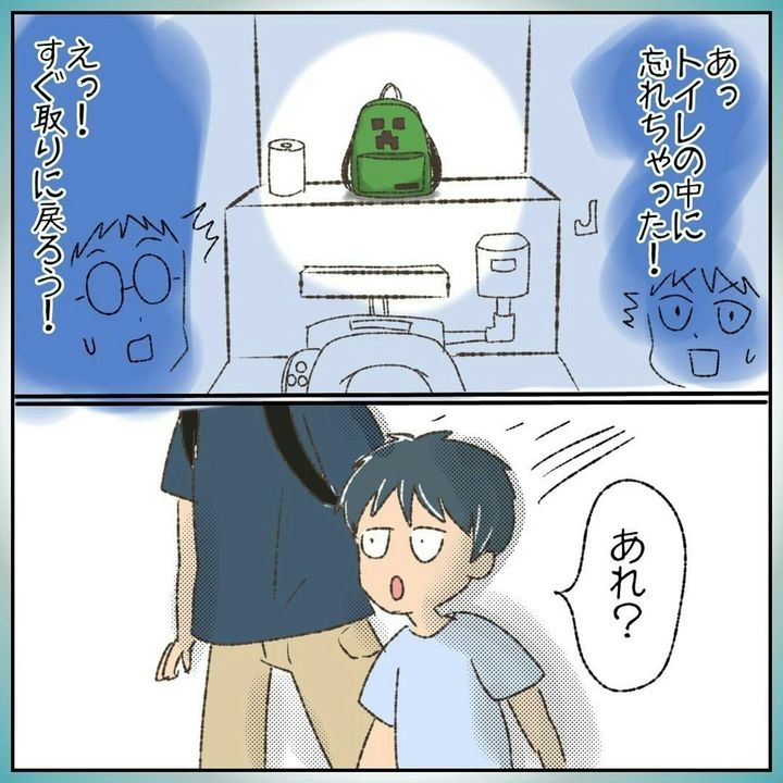 トイレを確認すると、にいくんの傘だけがポツンと置いてあったのです。すぐさま、先ほどまでトイレにいた人に声をかけます…。