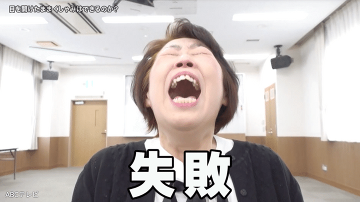 ナイトスクープの医療担当・谷先生によると、人体は「くしゃみをするときは条件反射で目を閉じるシステム」になっているという。そのため、目を開けた状態でのくしゃみは「難しいと思いますよ」と、先が思いやられることを言われてしまった…。