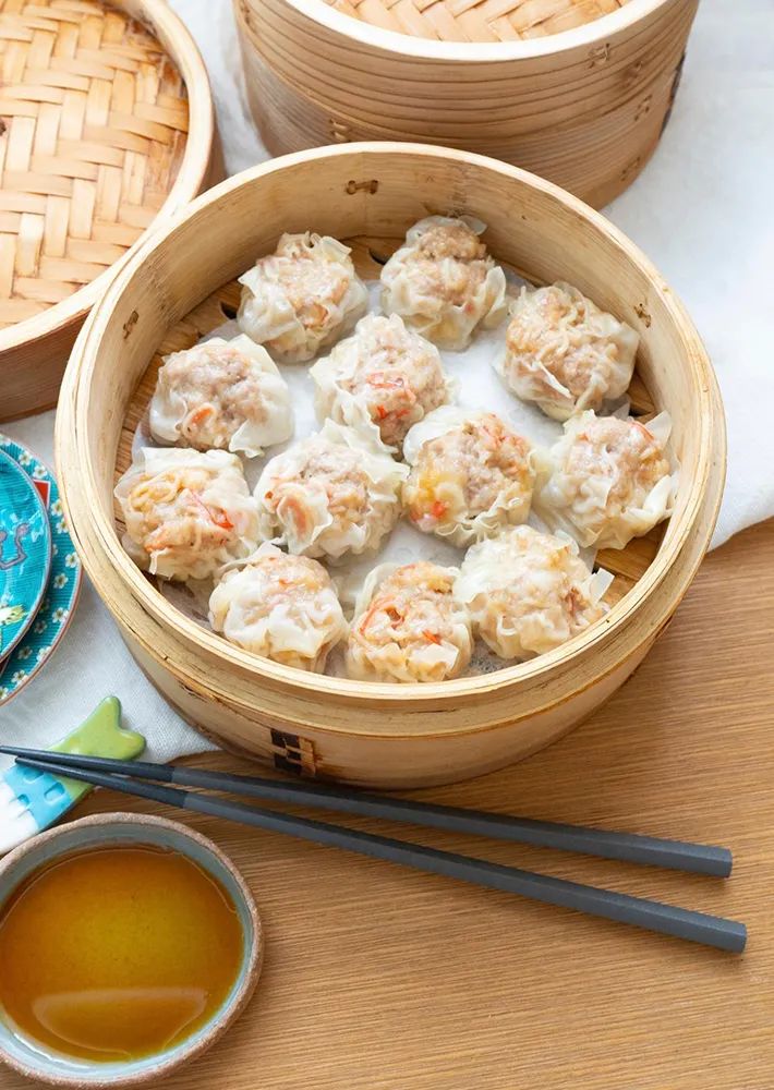 4.15等分にして丸め、シュウマイの皮をしっかりとつけるように包む。