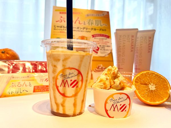注目は、希少な和漢柑橘「じゃばら」と、濃厚なグリークヨーグルトを組み合わせたスイーツ「じゃばらとフローズングリークヨーグルト オレンジとアプリコットのキャラメルソース」で、ジェラートとシェイクの2品です。