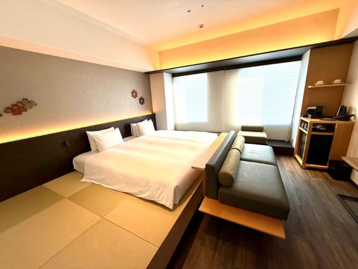 四条通りに面した、畳ベッドのコーナーキング。シンプルながらも清潔感があってとっても快適。