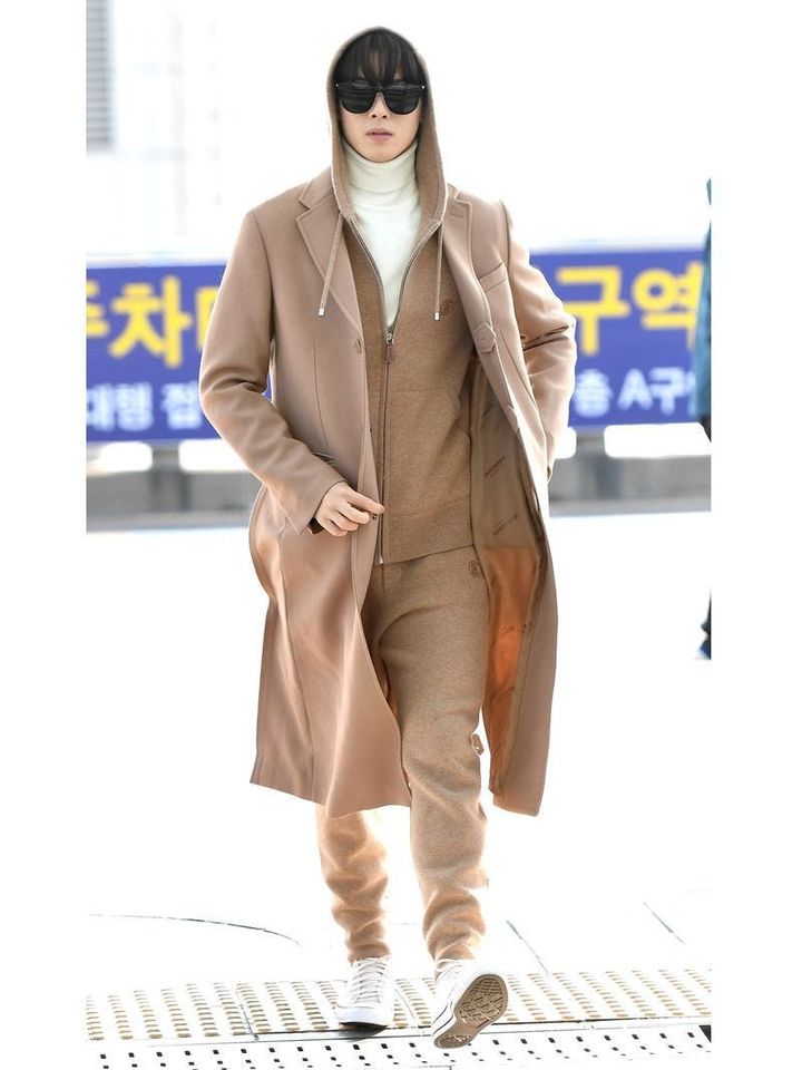 2020年1月、コマーシャル撮影のために、仁川国際空港からイタリアへ向かう彼をキャッチ。この日は、コートやフーディなど、アイテムの多くをバーバリーでピック。ベージュのワントーンに白を差した、清潔感があふれるコーデがとってもお似合い。