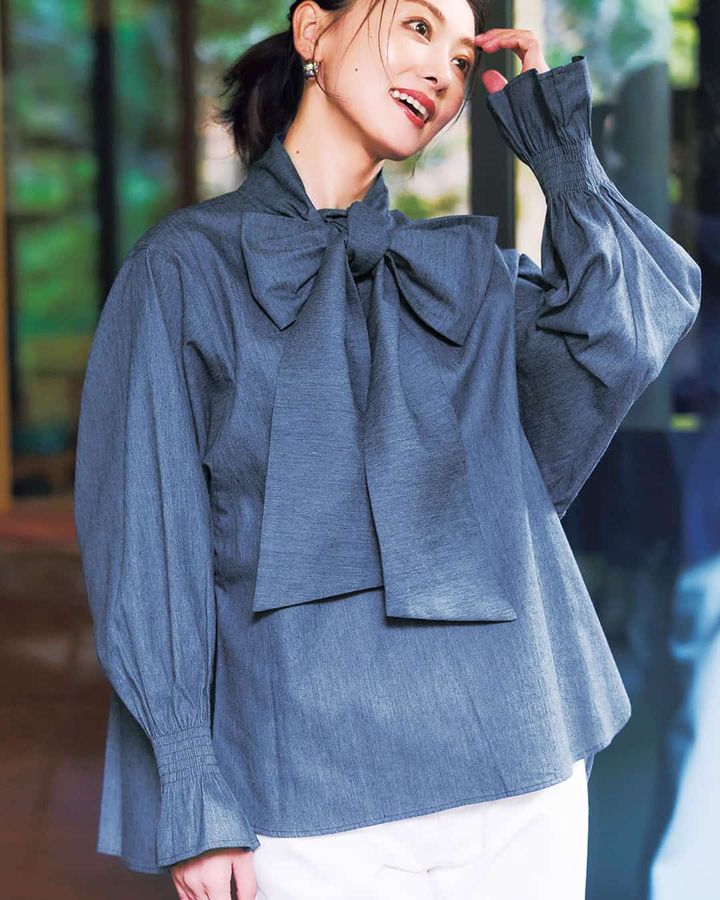 ②季節を選ばず着回し力も高い、即モト取れな「映えブラウス」