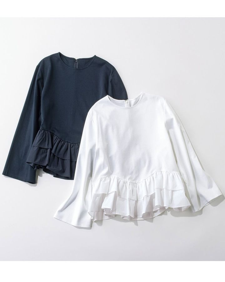 ⑤きちんと感とカジュアル感を両立「裾フリルトップス」