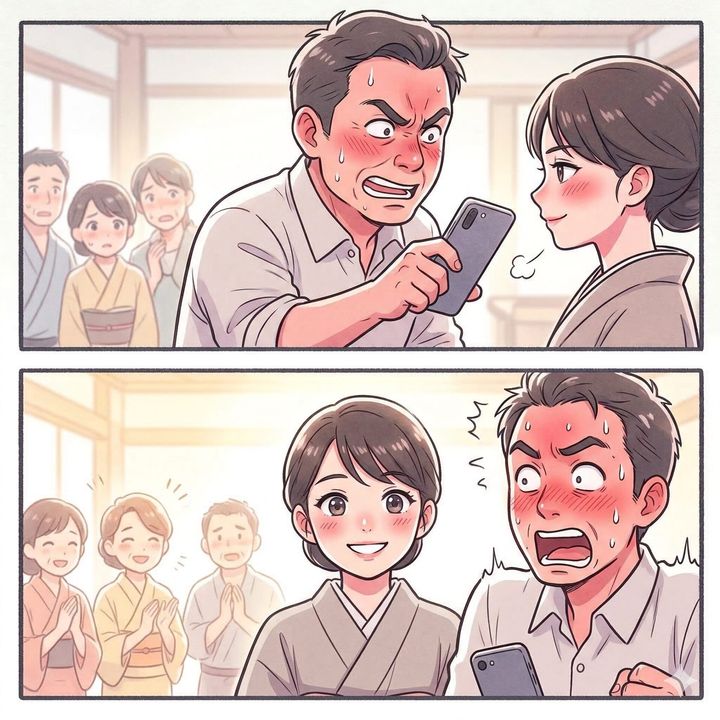 彼はスマートフォンを突き出し、勝ち誇ったような顔で私を睨みつけました。