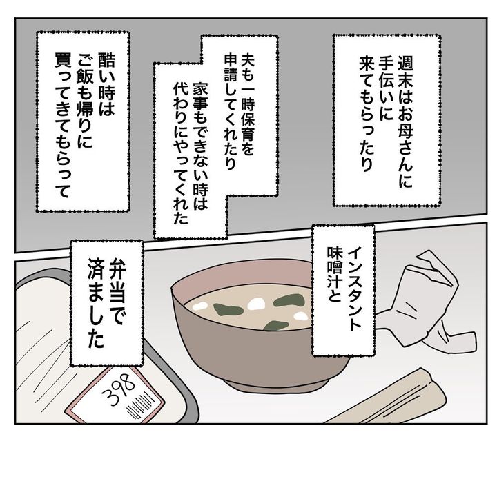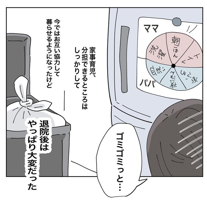 退院後、夫と協力したり母に手伝ってもらったり、できるだけ「楽」をする努力をしたものの、うまくいかない時期もあり…。