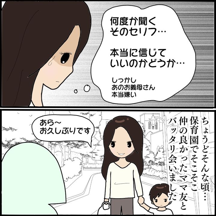そんなある日、以前仲の良かったママ友とバッタリ遭遇したところ、怖美にまつわる驚きの話題を耳にするのでした。