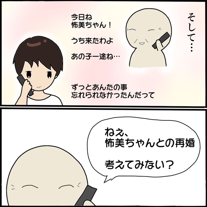 夫に離婚の意向があることを、電話越しに伝えてきた義母。しかも怖美と再婚させるという話にまで及び、K代は帰宅した夫に説明を求めます。一方、義母の家を訪ねてきたのは…。