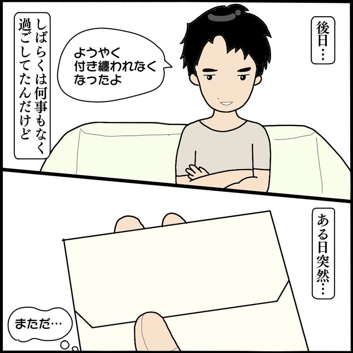 すると彼女からのつきまといは一旦落ち着くも、不審な手紙を受け取ります。