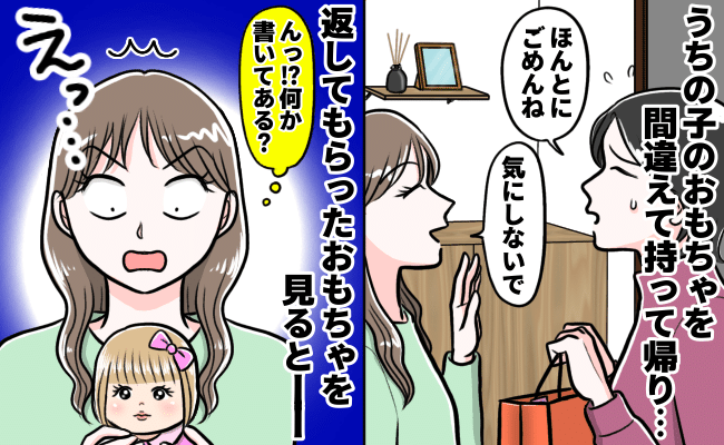 わが家のおもちゃを隣人の子が持ち帰り。謝罪とともに返ってきたおもちゃを見て固まったワケは!?
