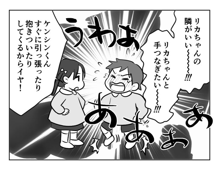 私(エツコ)は、夫とひとり息子のケンシンとの3人家族。夫は単身赴任中です。ケンシンは私の宝物ですが、こだわりは強いし癇癪も多い子。私はケンシンと一緒にいる日々を「辛い」と思うようになりました。そんななか「リカちゃん」と出会えたことで、ケンシンにすさまじい成長が見られたのです! 私は息子の初恋を目いっぱい応援することに。なのにリカちゃんはケンシンを避け続け、怒ったケンシンはとうとうリカちゃんを押してしまうのです。さらにリカちゃんは「ハルキくんが好き」とかふざけたことを言い出し、ケンシンを拒否して行ってしまいました。