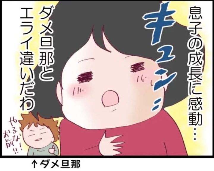 【漫画】息子が幼稚園に復帰宣言! ダメ夫と違って頼もしい【怖すぎる隣人 Vol.47】