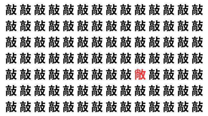 たくさんの「敲」の中に、よく似た別の漢字が1文字だけ隠れています。