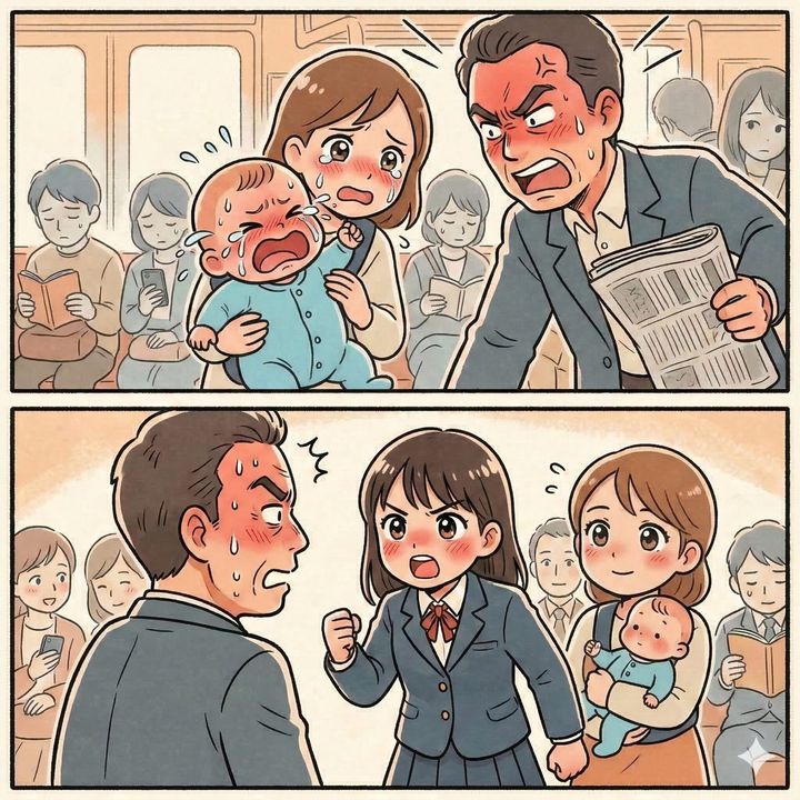 電車内で泣く赤ちゃんに「うるさい!」と怒鳴る男。だが、車内の空気を変えた女子高生の一言とは【短編小説】