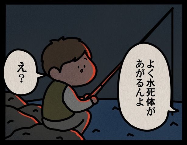 3. 夜の海で釣りをしていたときのゾッとした体験談。隣に座っていたおじさんいわく、この場所はよく水死体が上がるらしいのだが…【漫画家インタビュー】