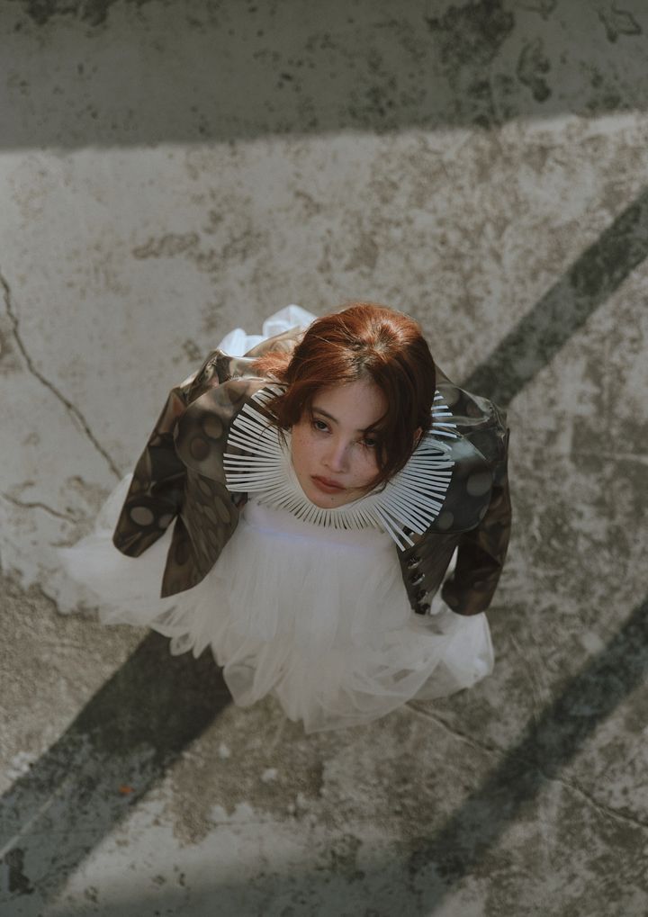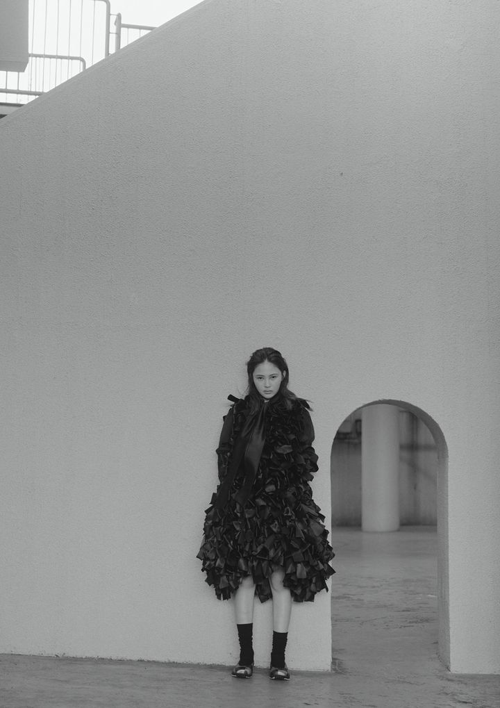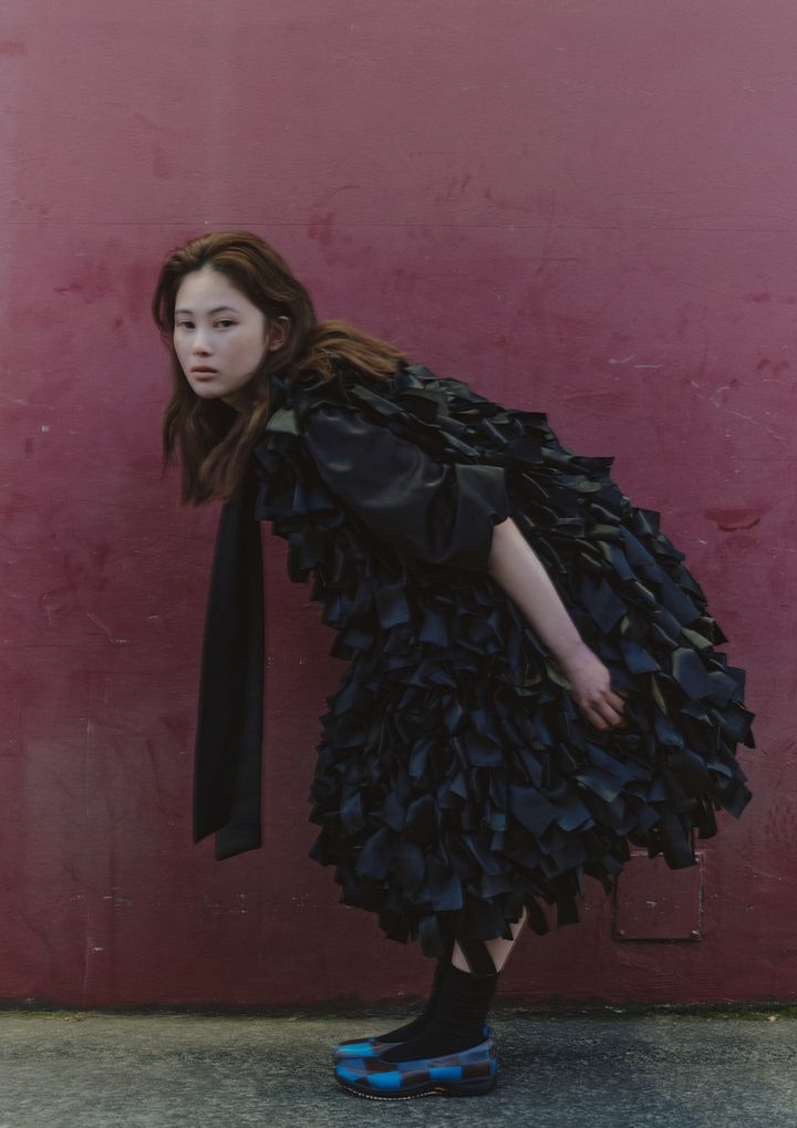 jacket and boots by LEEANN HUANG, top by TOGA, dress by SHIORI MIKATA