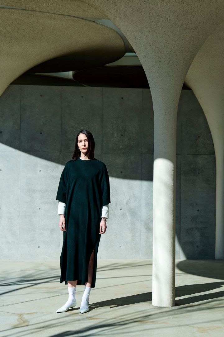 ワンピース/284,900円 トップス/136,400円 靴/198,000円(すべて<a href="https://www.therow.com/ja-jp" target="_blank">ザ・ロウ</a>/ザ・ロウ・ジャパン tel.03-4400-2656) ピアス/82,500円 バングル/176,000円(ともに<a href="https://www.georgjensen.com/ja-jp" target="_blank">ジョージ ジェンセン</a>/ジョージ ジェンセン ジャパン tel.0120-637-146) 靴下/スタイリスト私物 撮影=長山一樹(S-14)