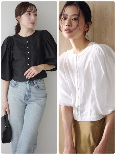 袖にボリュームを持たせたデザインですが、丈感はコンパクトなためどんなボトムとも相性抜群。二の腕カバーが叶うだけでなく、1枚で映える点もポイントです。